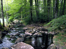 On le voit couler ici dans l'ombre de la forêt de Ramondens, juste avant son captage.