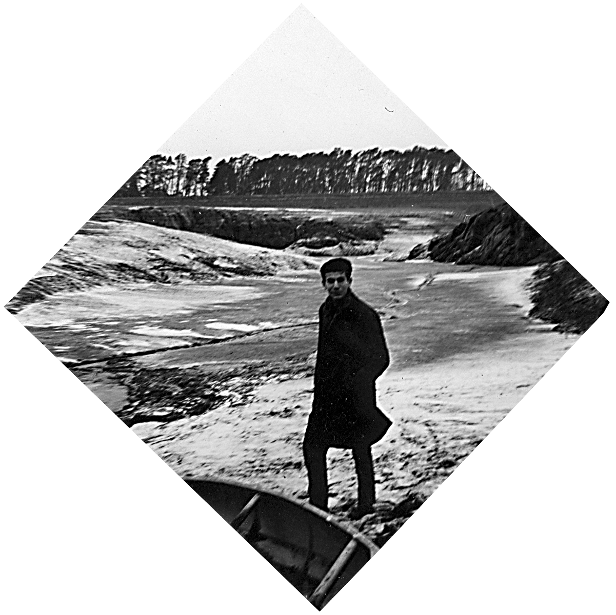 Moi-même Jean-François, à l’intérieur du bassin, posant près d’une épave de canoë. Dans le fond, on aperçoit le barrage